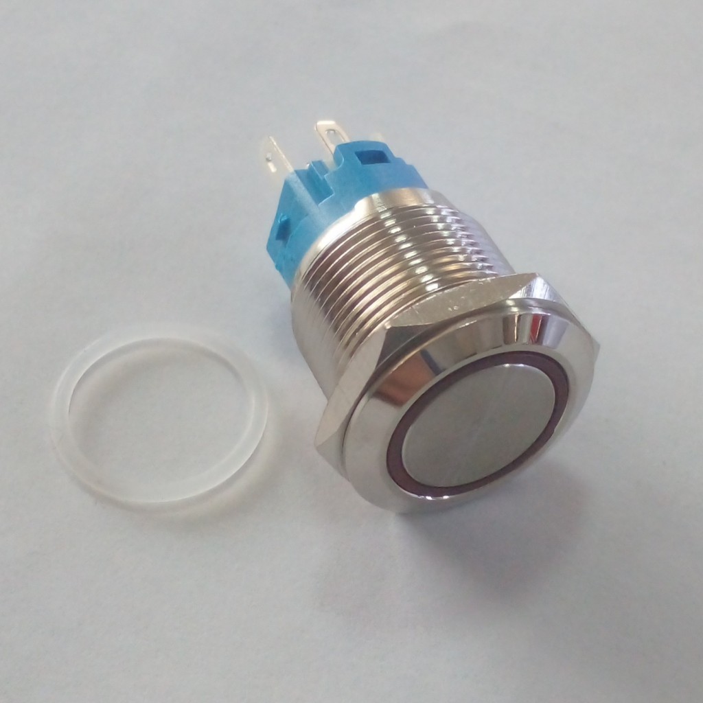 کلید فشاری فلزی 5 پایه گرد چراغ دار ضد آب- push button 19mm 12-24v